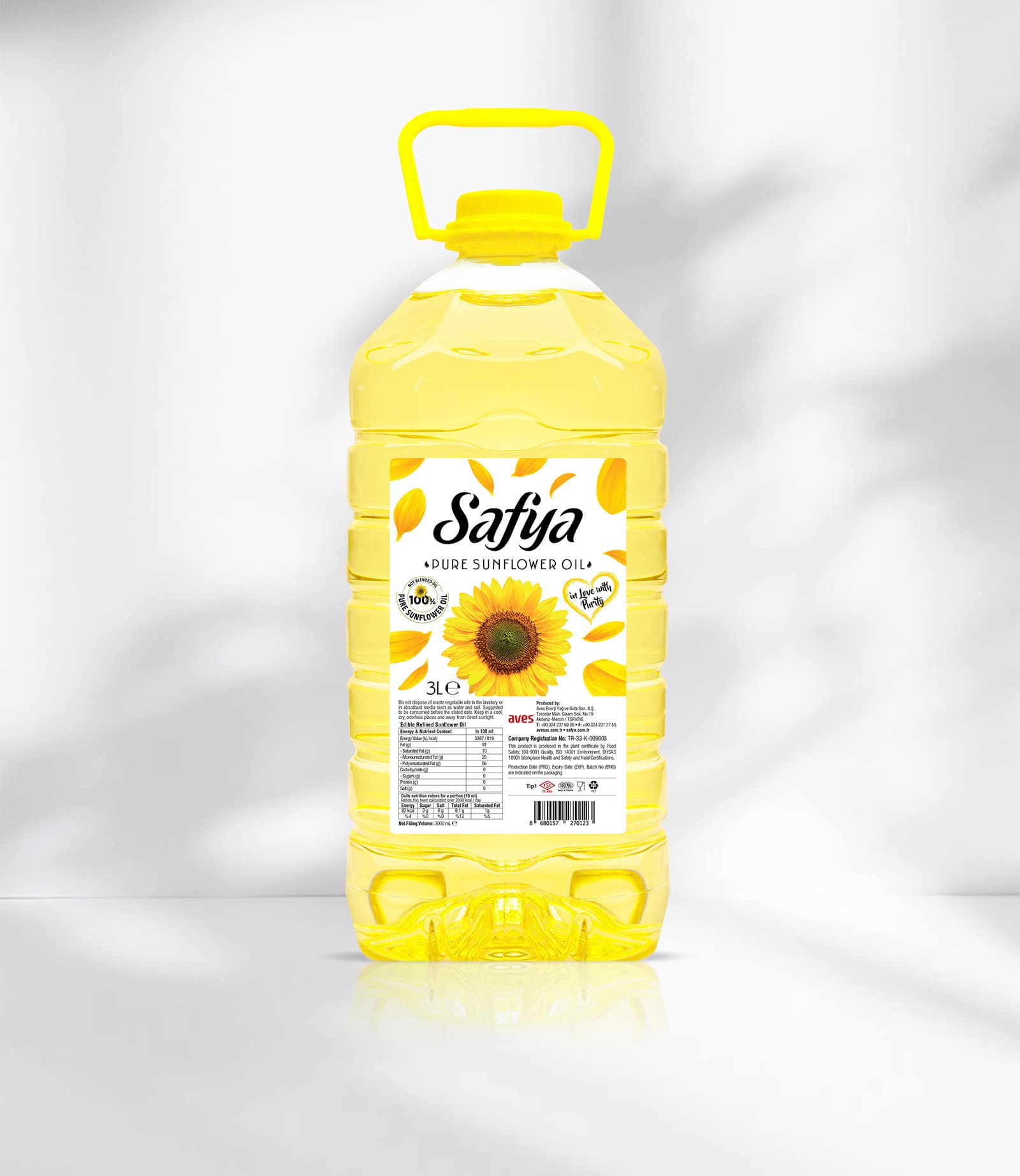 3L Safya Sunflower Oil was specially developed to bring the purest form of taste to your tables. Produced in Türkiye’s largest fully integrated oilseed processing plant Safya 3 L Pet Bottle Squared Sunflower Oil You can use Sunflower Oil safely in all hot and cold dishes, fried meals, pastries, sherbet desserts, salads and appetizers.